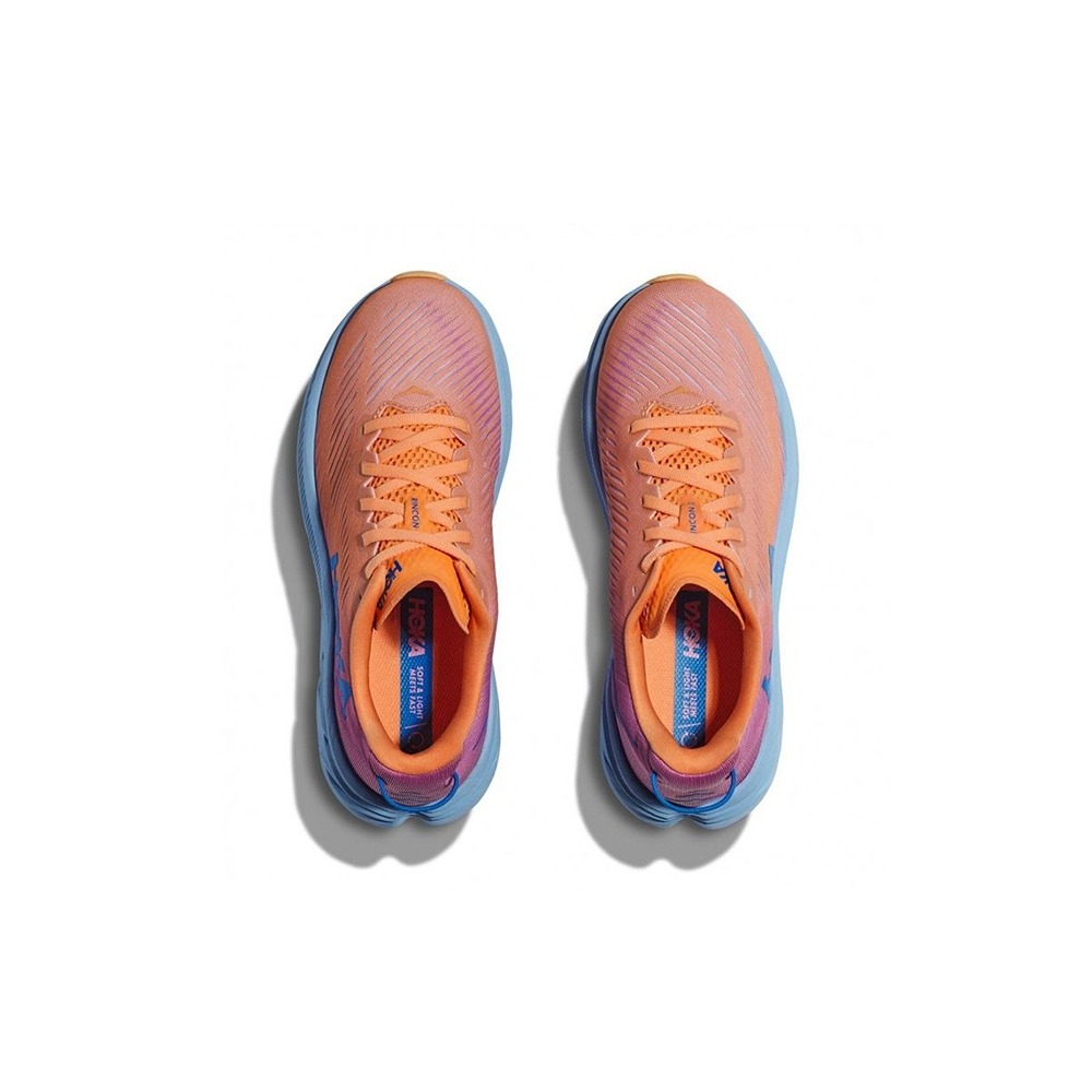Превосходная амортизация: Rincon 3 оснащены полноразмерной подошвой из пеноматериала EVA, характерной для HOKA, которая обеспечивает высокий уровень поглощения ударов и мягкое приземление без утяжеления обуви.