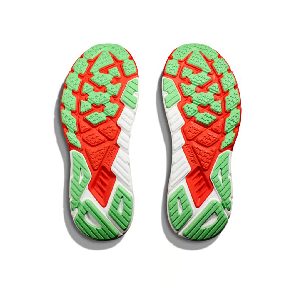 Стабилизация J-Frame: Фирменная технология Hoka, которая представляет собой более плотную и упругую пену EVA, интегрированную в промежуточную подошву. Она проходит по внутренней стороне стопы в виде буквы «J», что обеспечивает поддержку и предотвращает чрезмерный завал стопы внутрь, не используя жёсткие и неудобные вставки.